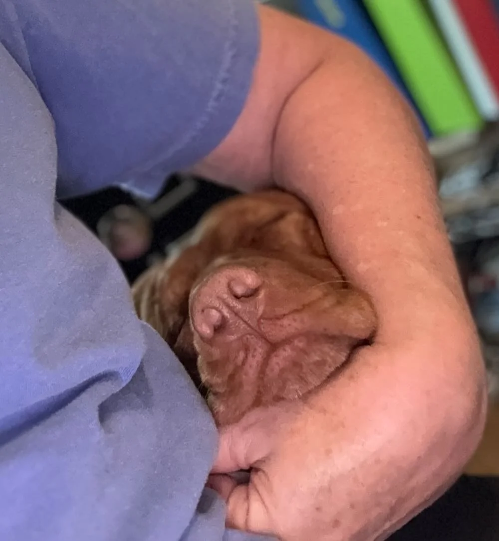 The rabbit monitor off duty. When she is in the office, she likes to get behind me on my office chair and if I happen to make a handy chin rest with my arm, she will immediately take advantage of it.