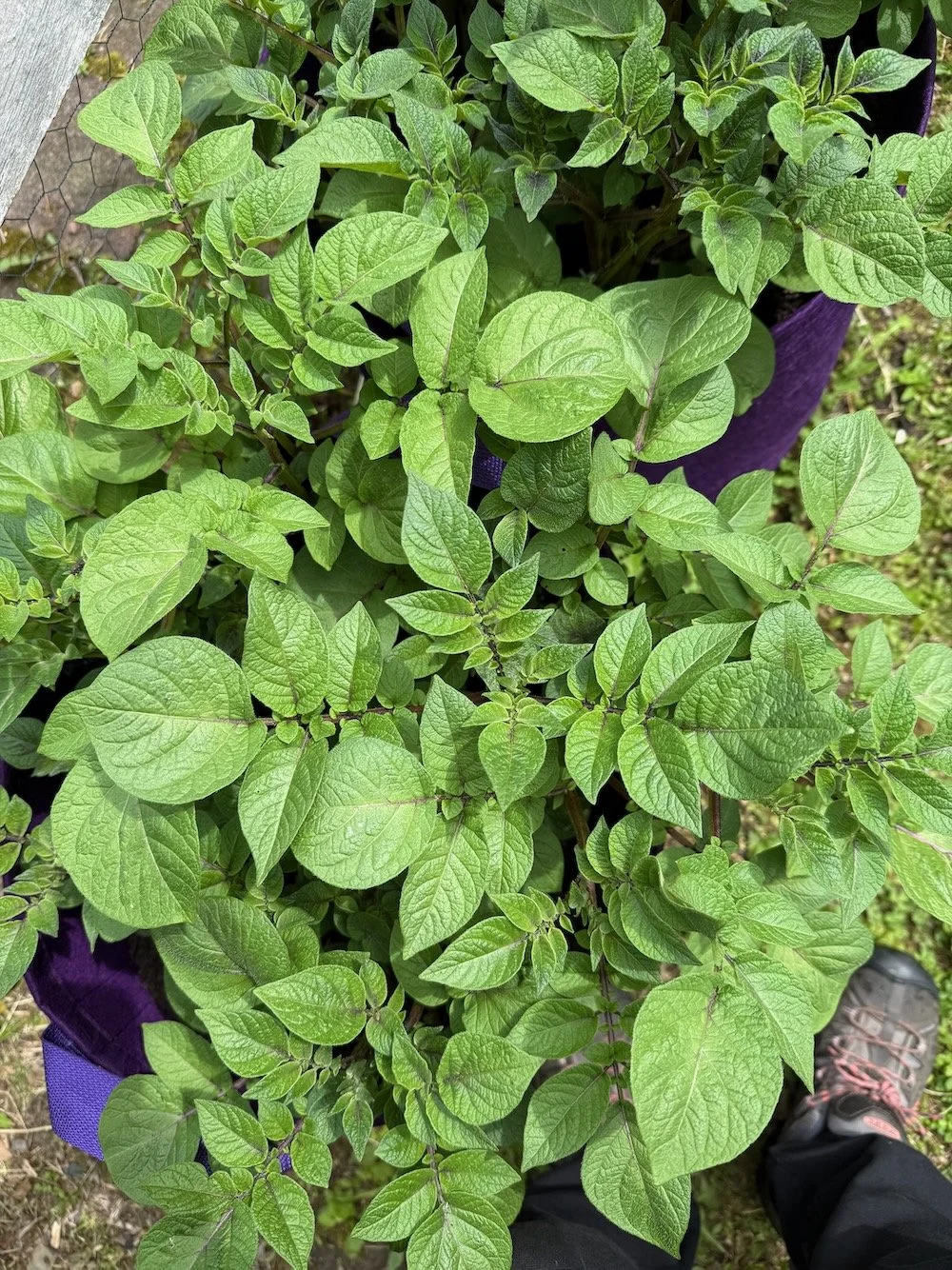 The Blackberry potatoes that were just barely starting to pop above the soil are now rising far above the top of the grow bags. They are looking quite healthy and fabulous.