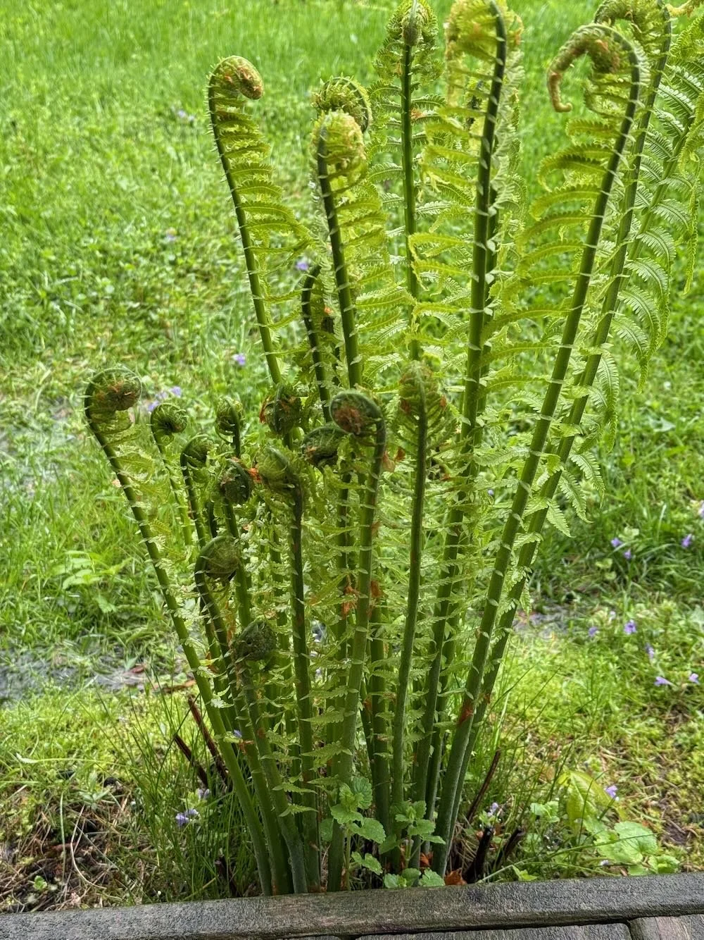 Meanwhile out in the gardens all of the Spring rains are keeping the plants, trees, and lawns well hydrated. The ferns have unfurled outside several of the guest rooms.