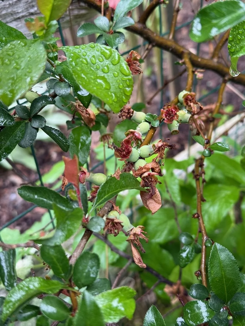 I recently discover that the Quince bush that I planted about five years ago is finally producing fruit! I hope there will be enough of a harvest to make a nice Quince paste, which is so yummy with a slice of cheese.