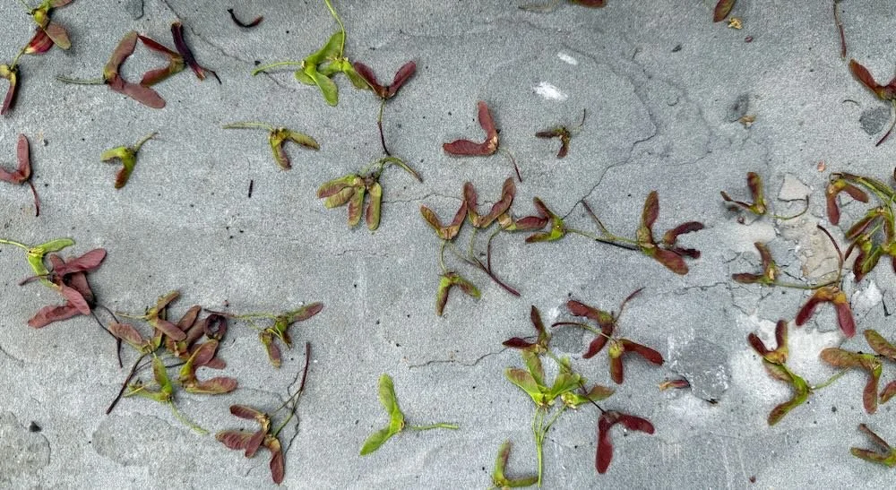 That’s the garden news for the moment. I close with this image of maple tree seeds covering some steps at the back of our inn. It is no wonder I see little maple tree seedlings everywhere.