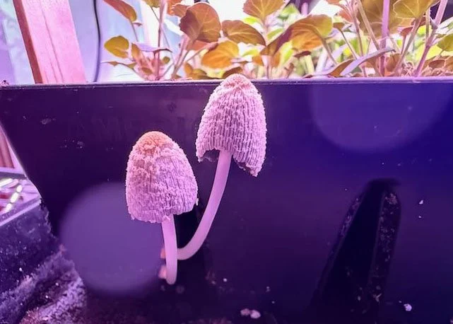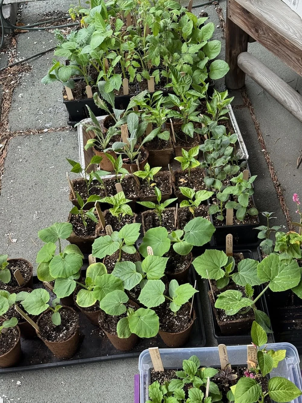 This year I am trying to grow a variety of perennials from seed. They seem to growing at a much slower pace than the annuals and vegetables, so I will likely pot them up and keep them growing in the seeding room until they are a nice healthy size to brave the outdoors. Once all the bigger seedlings have moved outside, I’ll have the space I need to do this on the shelves. But look at this surprise pop up on the side of the cells of the Apache Sunset seedlings! Anyone know what kind of mushroom this is? No, I’m not going to try it!