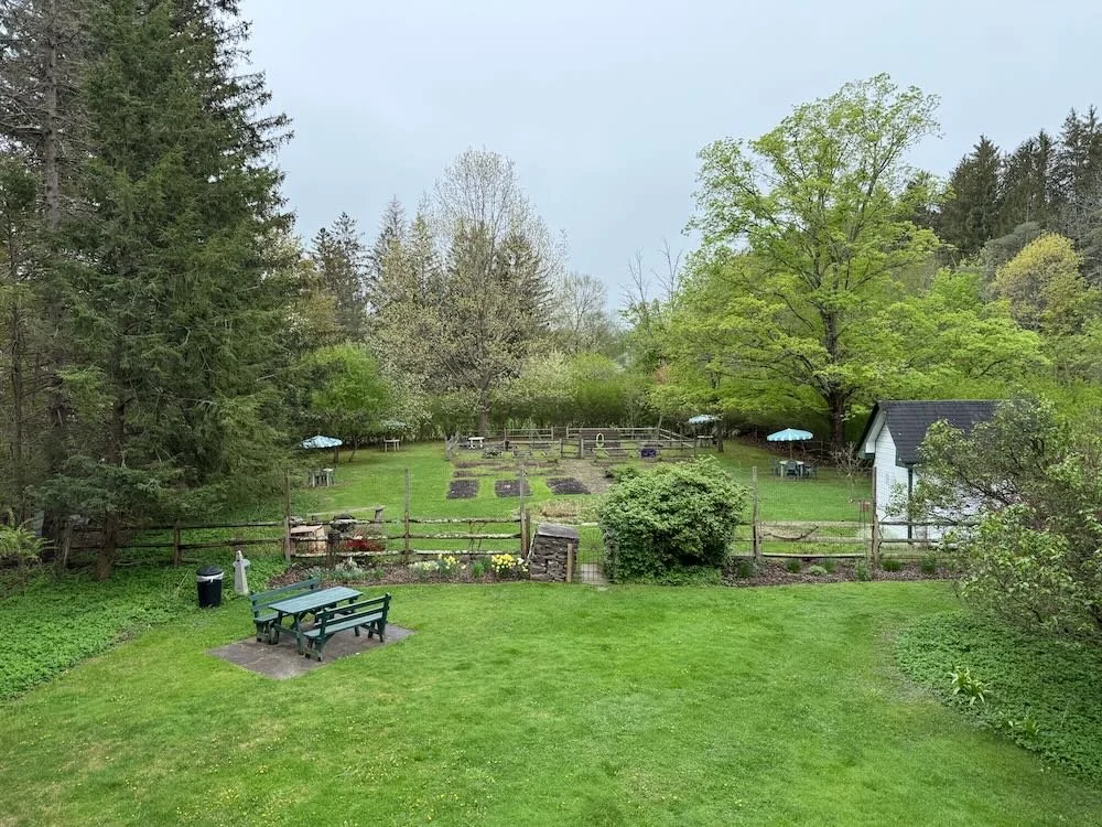 This week was the beginning of the process of acclimating or hardening off of the seedlings that were started indoors, preparing them for their move to the gardens next week. My seedling room is on the second floor of our main inn and luckily the second floor also has a lovely porch across the front of the inn with plenty of space for all the plant trays. I’m so glad that I don’t have to go up and down the stairs each day with all of these trays. I start the process by putting the trays out for just a couple of hours, increasing the time outside and hour or so each day.